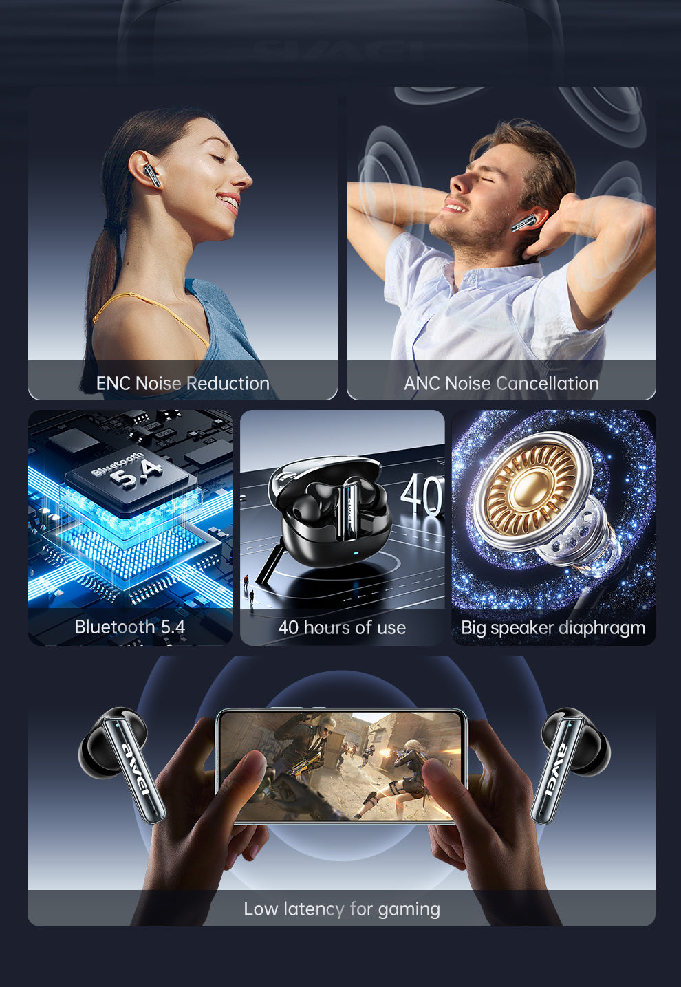 AWEI T52pro Bluetooth 5.3 Wireless Earbuds