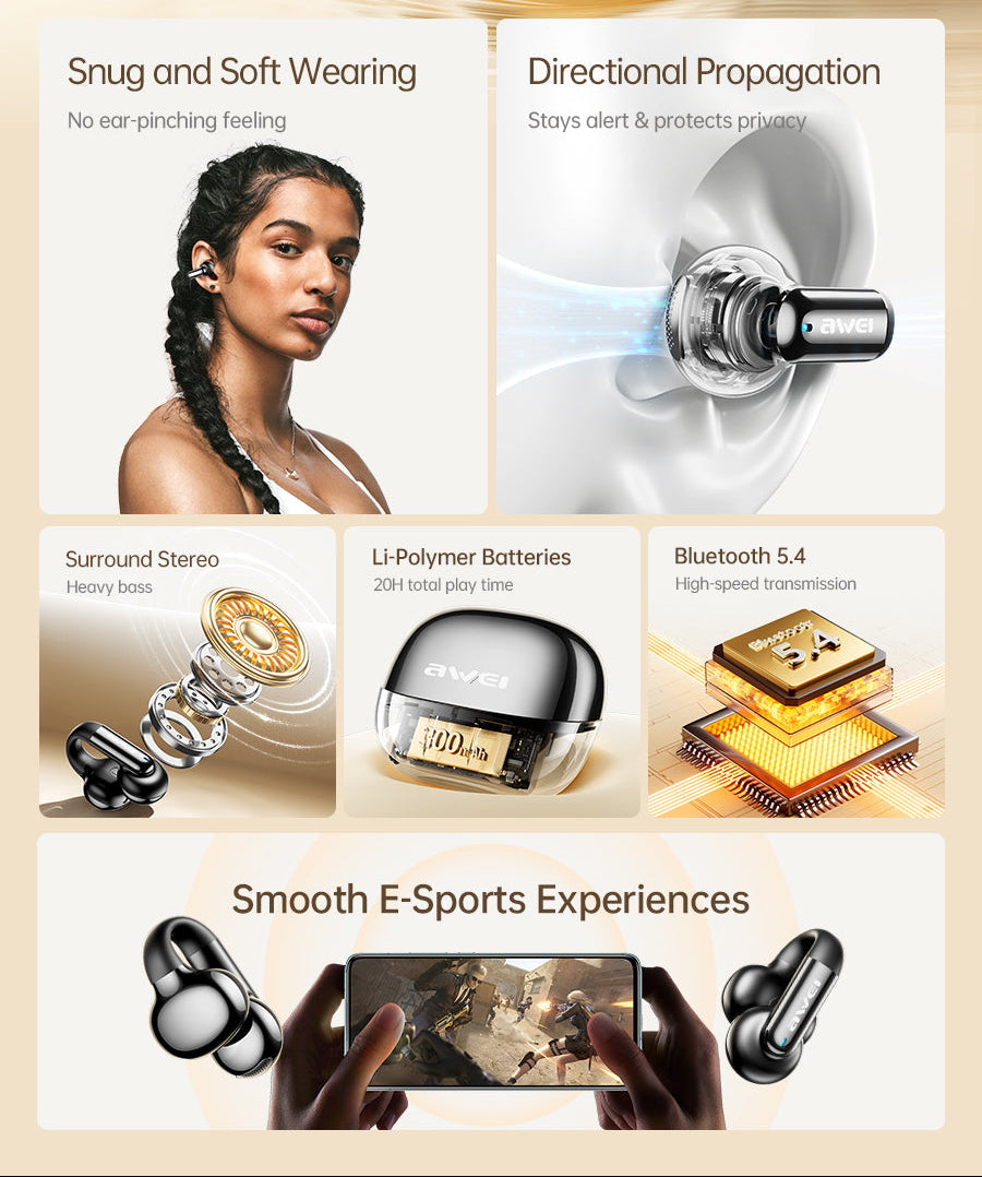 AWEI TZ30 Ear Clip Earphones 2-MIc ENC